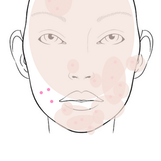 Eg; nose, chin or cheeks (Not all over the face this time)